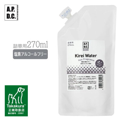 ケア用品 APDC クリアキレイウォーター ノンフレグランス(無香料)詰替用270ml ■ 国産 犬猫用 消臭・除菌スプレー ブラッシング ウィルス除去