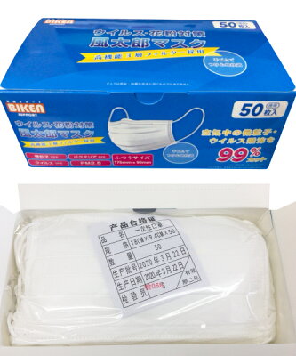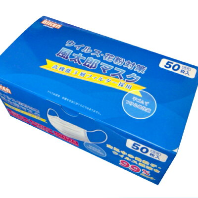 【商品名】 BIKEN ウィルス 花粉対策 風太郎マスク(50枚入・ふつうサイズ) サイズ:175×90mm 対象:ウィルス・PM2.5・風邪・花粉・ほこり等 【商品説明】 ○中国の工場から仕入れて販売しております。